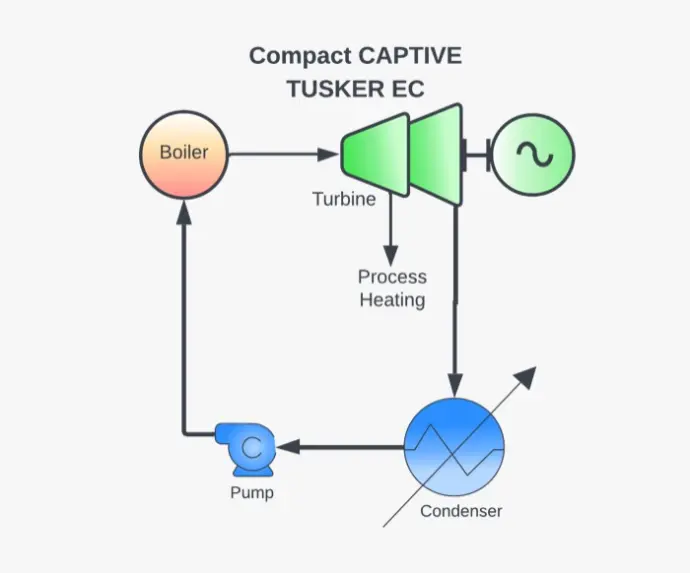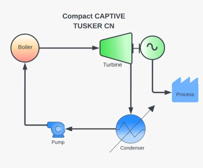 TUSKER CN Compact CAPTIVE generates onsite grid free Green Energy. A variant TUSKER EC Compact CAPTIVE can supply steam for process heating besides generating power. Local Fuel sources enhance cost effectiveness of this solution. Transmission losses are completely avoided pushing up the system efficiency.